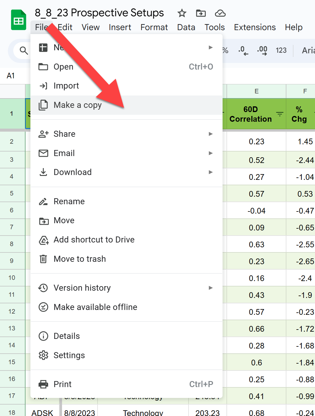 Make a Copy: Make a copy of the spreadsheet as a reference by choosing “Make a copy” from the File menu (File >> Make a copy). No one else, including me, can view any edits or changes you make. The copy is saved to your Google drive, available to only you.