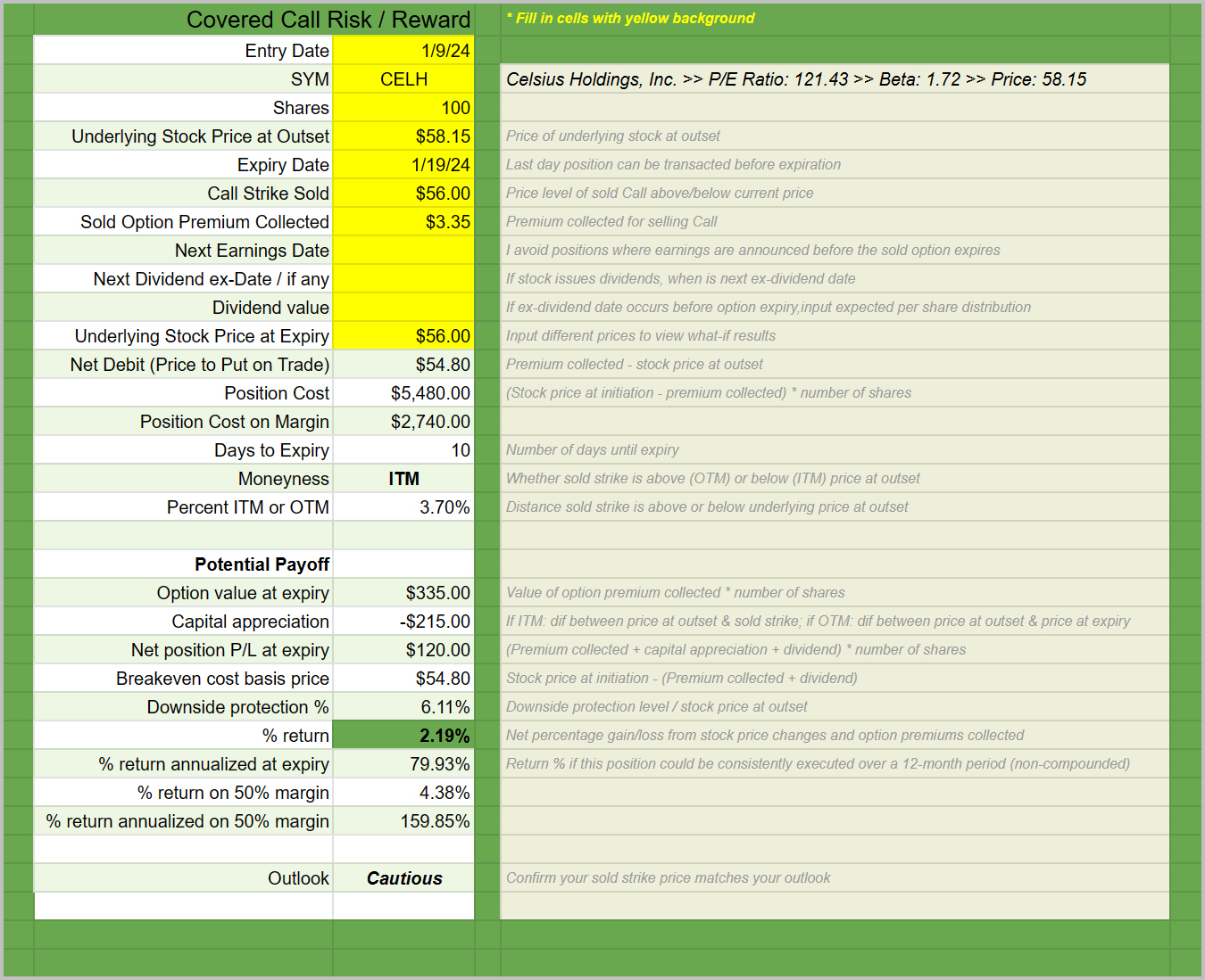 I’m considering a covered call in Celsius (CELH) tomorrow where I’d: